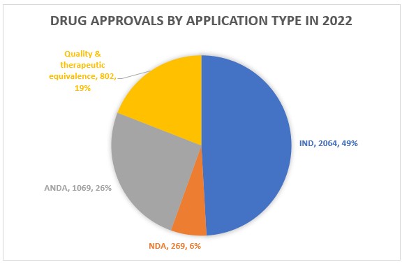 The CDE approved or recommended the approval of over 10,000 applications in 2022. Direct approval was granted to nearly a third, with supplemental and IND applications contributing to over half of the approvals.