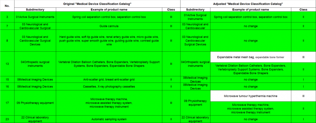 The recent adjustments pertain to 58 categories of medical devices and encompass changes in product descriptions, intended uses, examples of product names, and classification management. More importantly, adjustments have been made to the risk management categories of the following medical device categories: