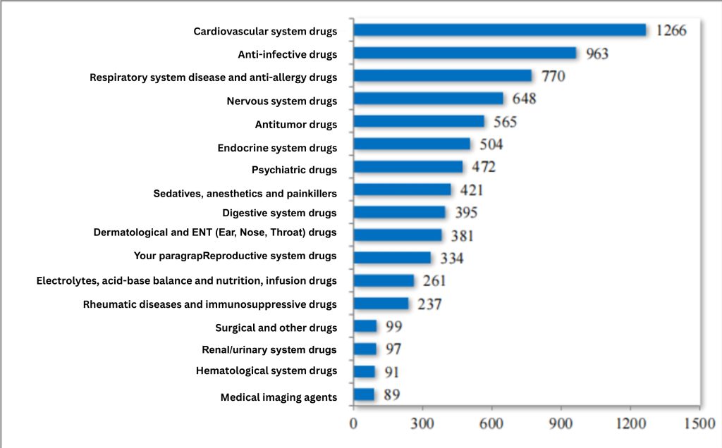 In 2024, the CDE recommended approving 3,041 chemical generic drug marketing applications, including 289 first-to-file products, effectively meeting clinical patients' need for high-quality generics. Since the reform of the chemical drug registration classification, the CDE has cumulatively recommended approving 7,593 chemical generic drugs, covering 17 therapeutic areas such as circulation, anti-infection, and respiration. For details, see Figure 9.