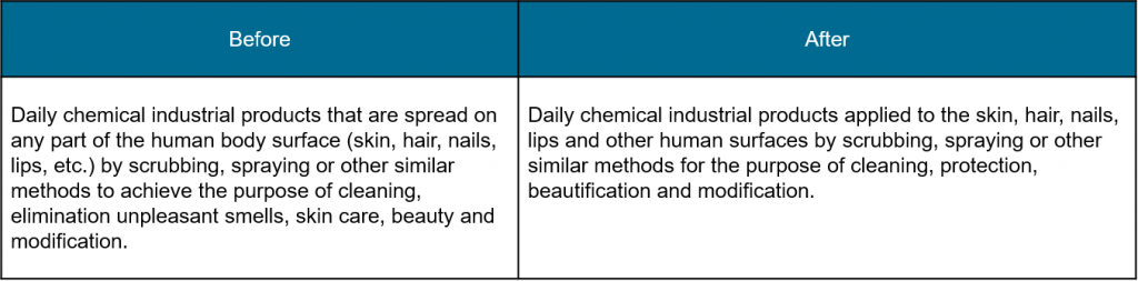 Note: According to the China Oral Care Industry Association’s announcement on July 2, 2020, toothpaste products are not considered as cosmetics. Further information will be disclosed by the NMPA.