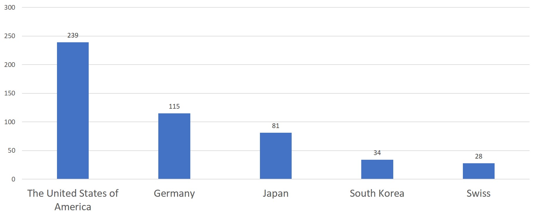 The United States of America, Germany, Japan, Korea and Switzerland have the highest number of initial registrations for overseas medical devices, taking up to 75.4% of the total number of initial registrations for overseas medical devices.