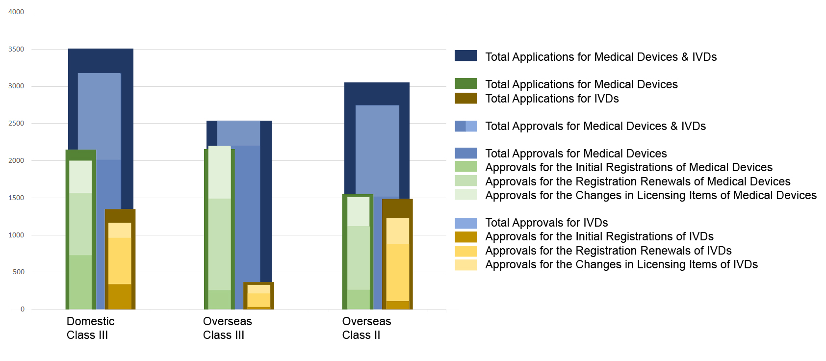 On 18.03.2020, the NMPA (National Medical Products Administration) issued the 2019 Annual Report for Medical Device Registration.In 2019, the NMPA received a total of 9,104 applications for the initial registration, registration renewals and changes in licensing items of Class III (Domestic and Overseas) and Class II (Overseas) medical devices, an increase of 37.8% from 2018. Amongst the 9,104 applications, the NMPA approved a total of 8,471 applications with an increase of 53.2% as compared to 2018. Also, the NMPA handled a total of 1,383 filing applications of imported Class I medical devices, a decrease of 20.7% as compared to 2018.