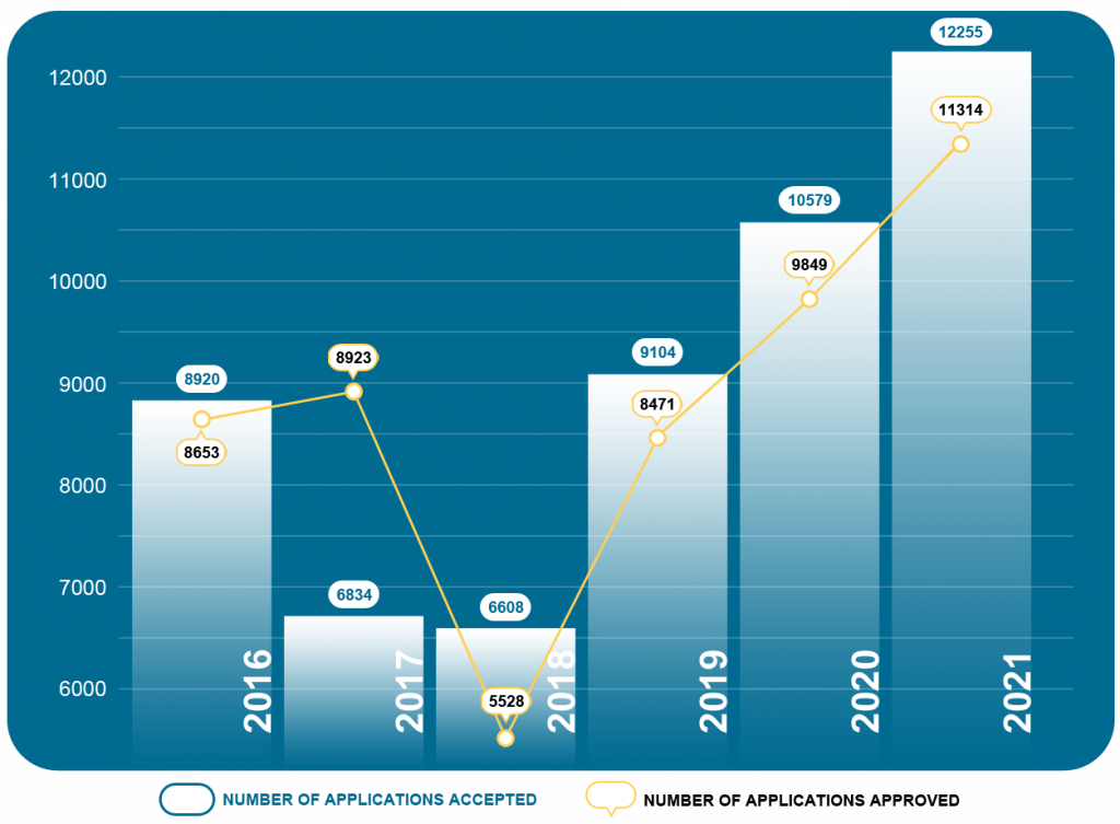 In 2021, the NMPA received a total of 12,255 applications for the initial registration, registration renewals and changes in licensing items of Class III (Domestic and Overseas) and Class II (Overseas) medical devices, increased by 15.8% as compared to 2020. Amongst the 12,255 applications, the NMPA approved a total of 11,314 applications with an increase of 14.9% as compared to 2020. The NMPA handled a total of 1,854 filing applications of imported Class I medical devices, an increase of 0.5% as compared to 2020.