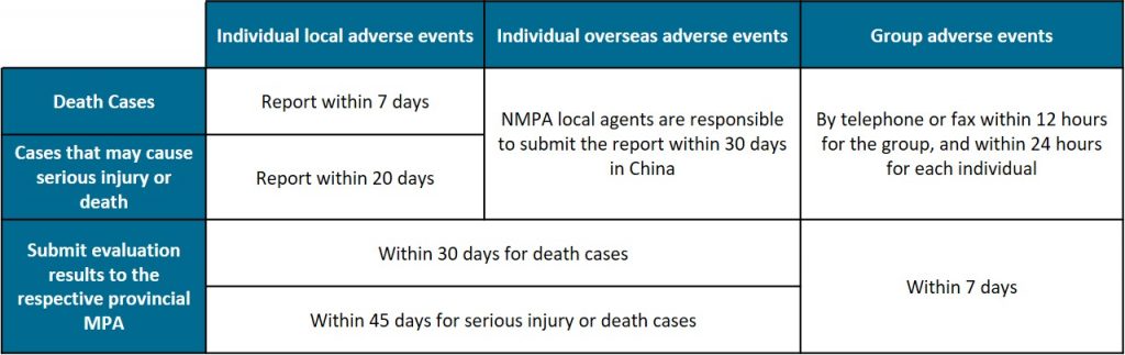 On 10.04.2020, the NMPA (National Medical Products Administration) made the announcement No.25-2020 to provide guidance to NMPA Legal Agents on the timescales for monitoring and reporting medical device adverse events.